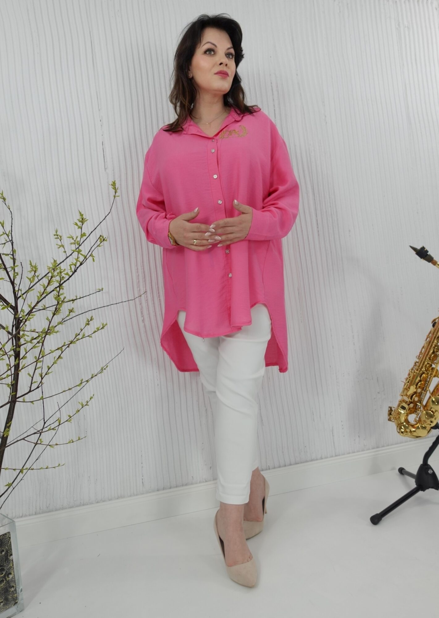 Asymetryczna długa koszula z kołnierzykiem w kolorze różowym,
