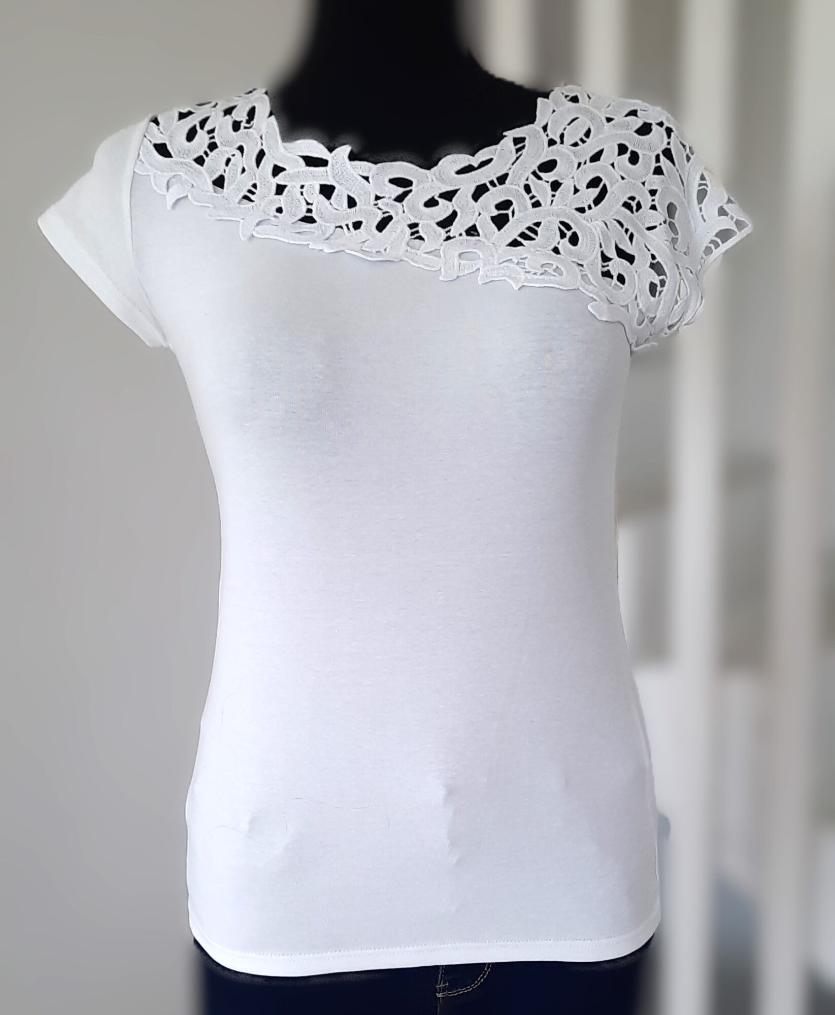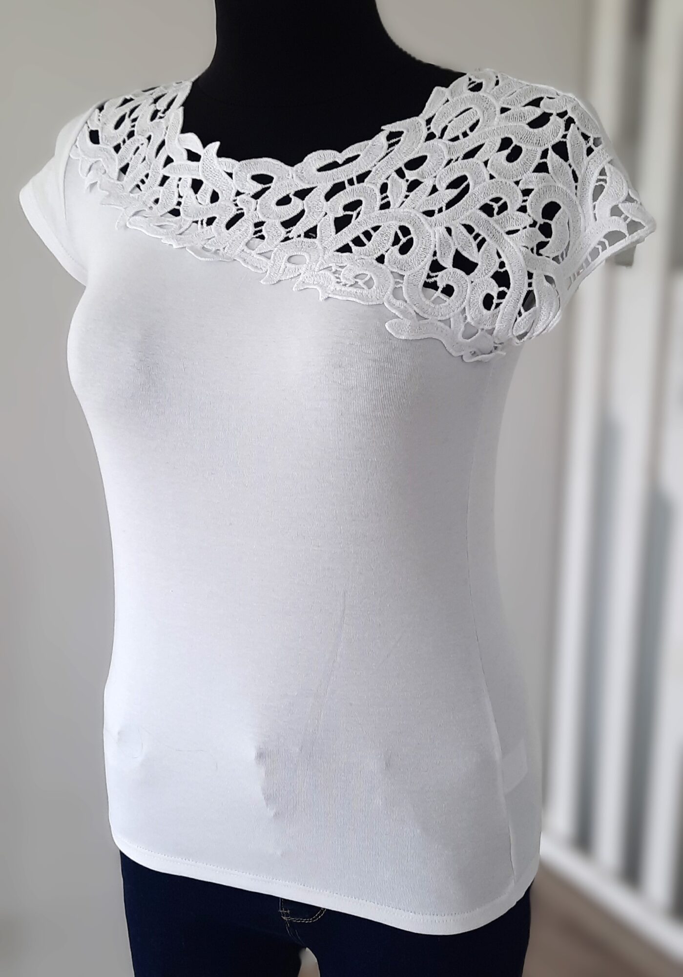 Bluzka bawełniana z koronkowym dekoltem biała uni