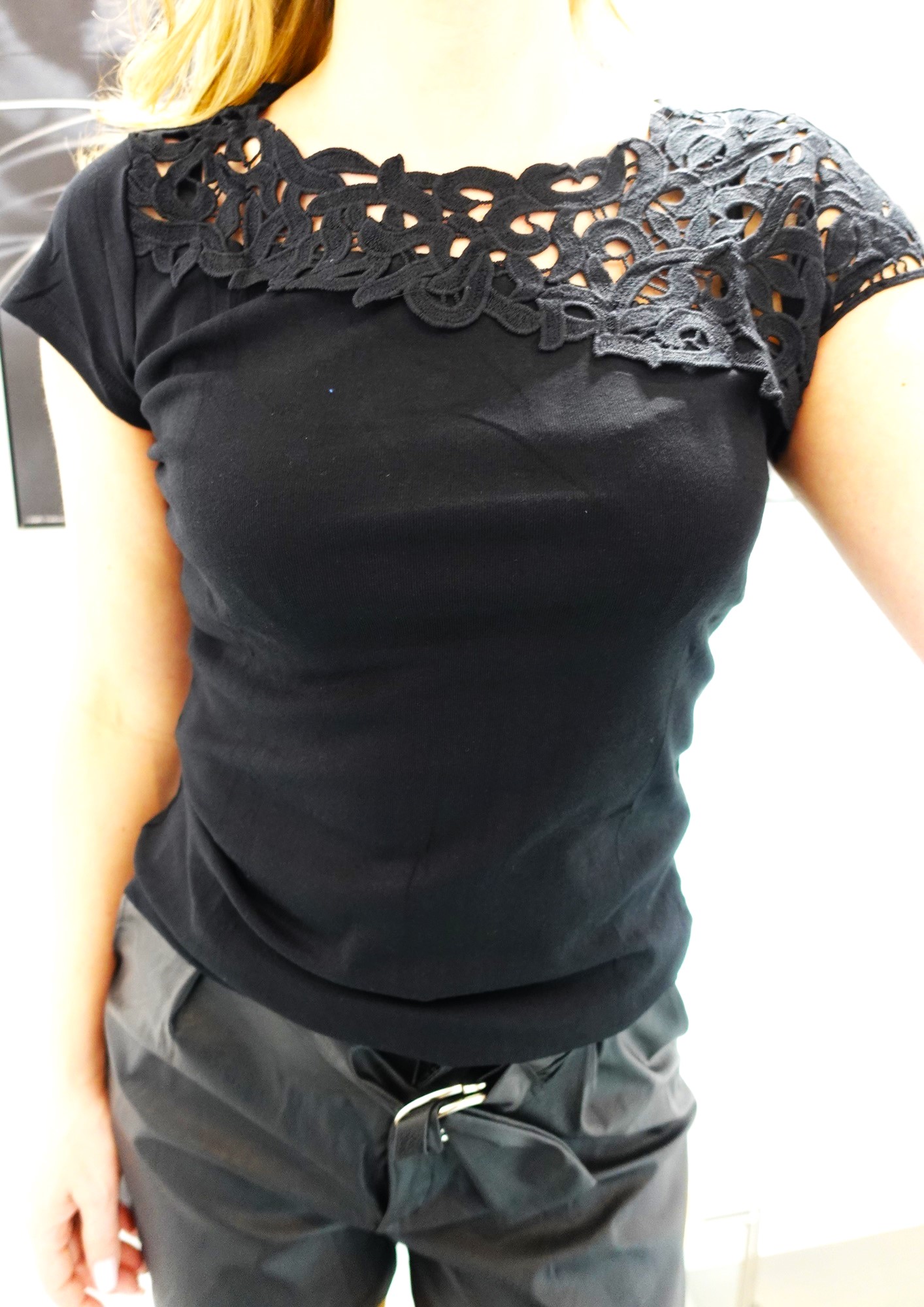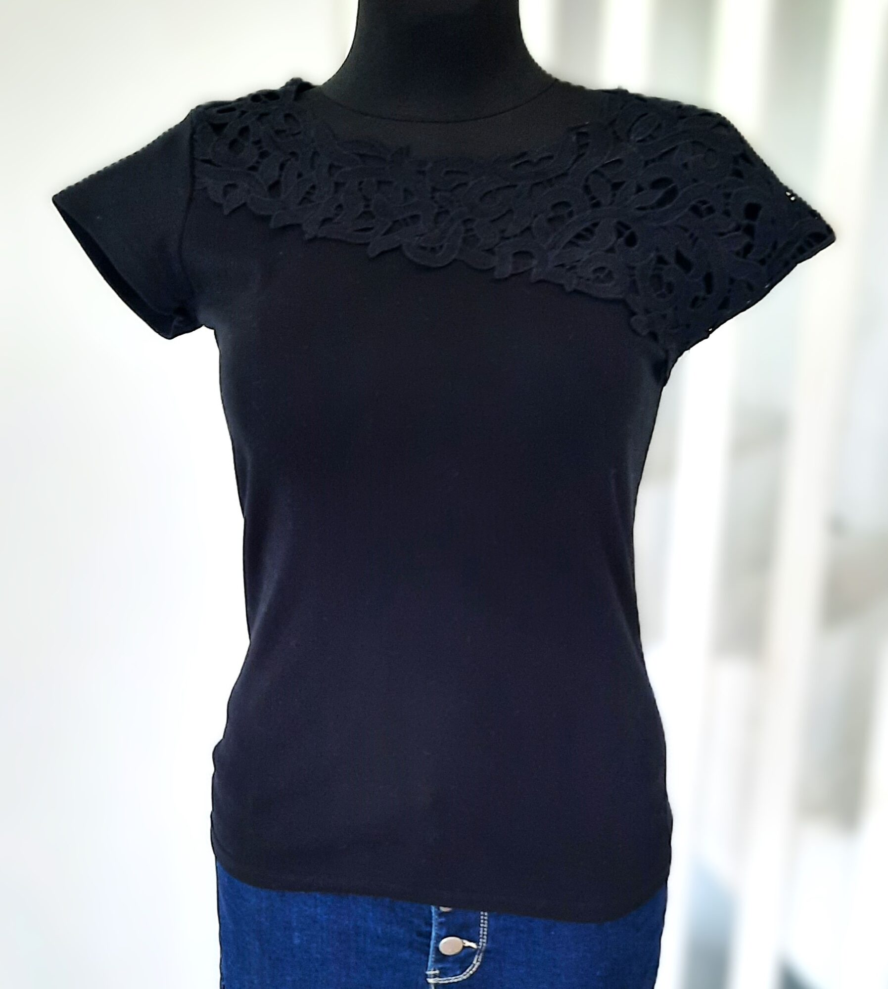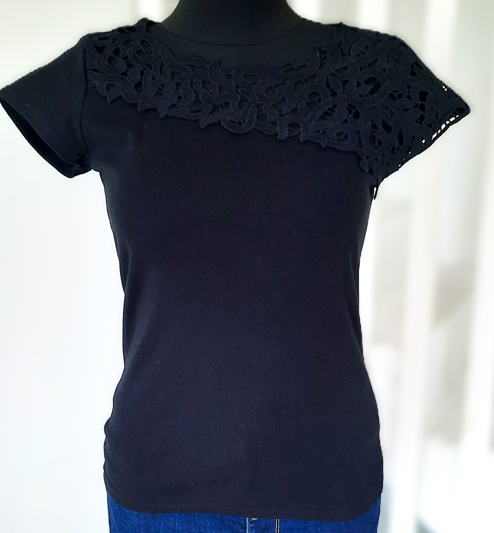 Bluzka bawełniana z koronkowym dekoltem czarna uni