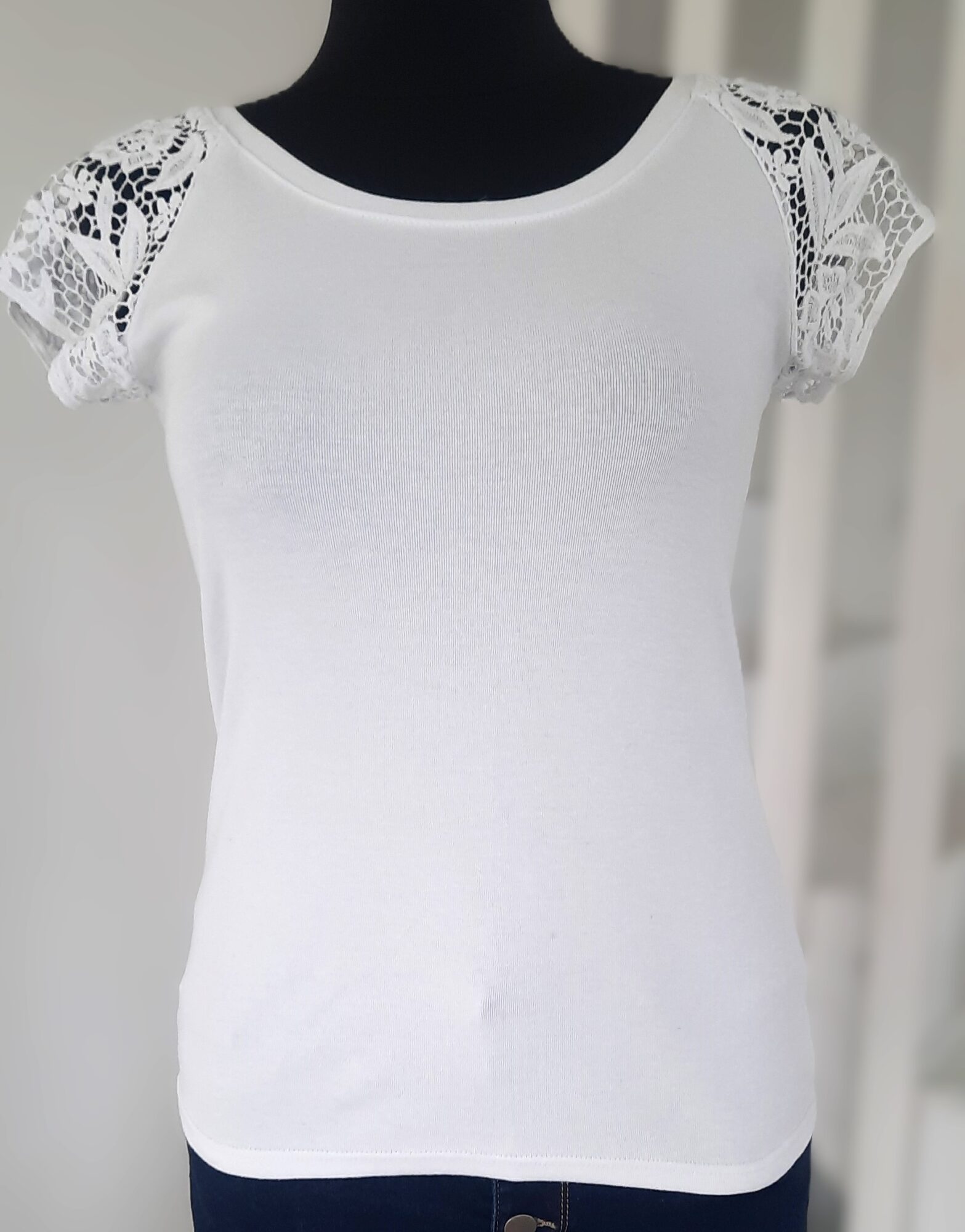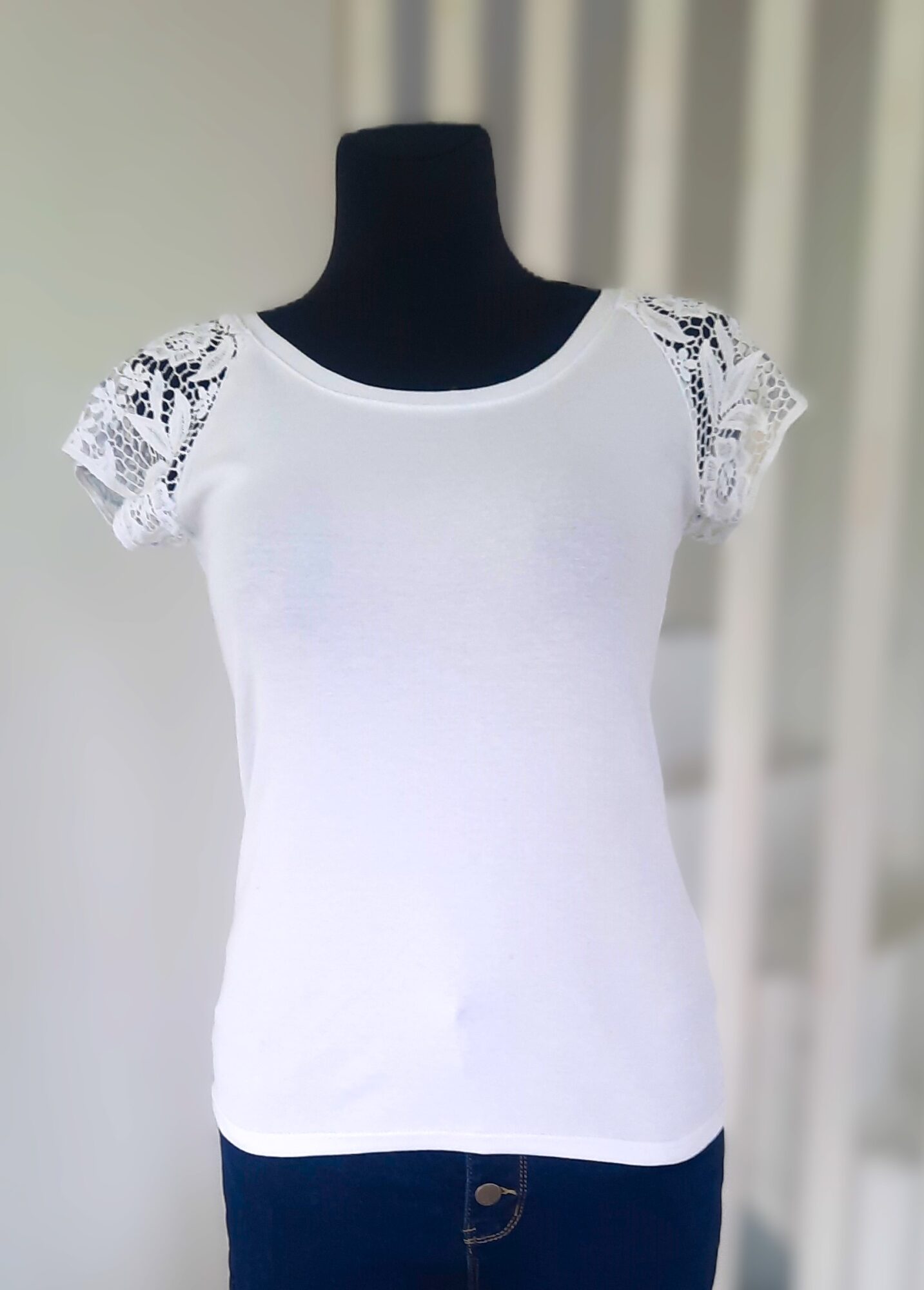 Bluzka bawełniana z koronkowymi rękawkami biała uni