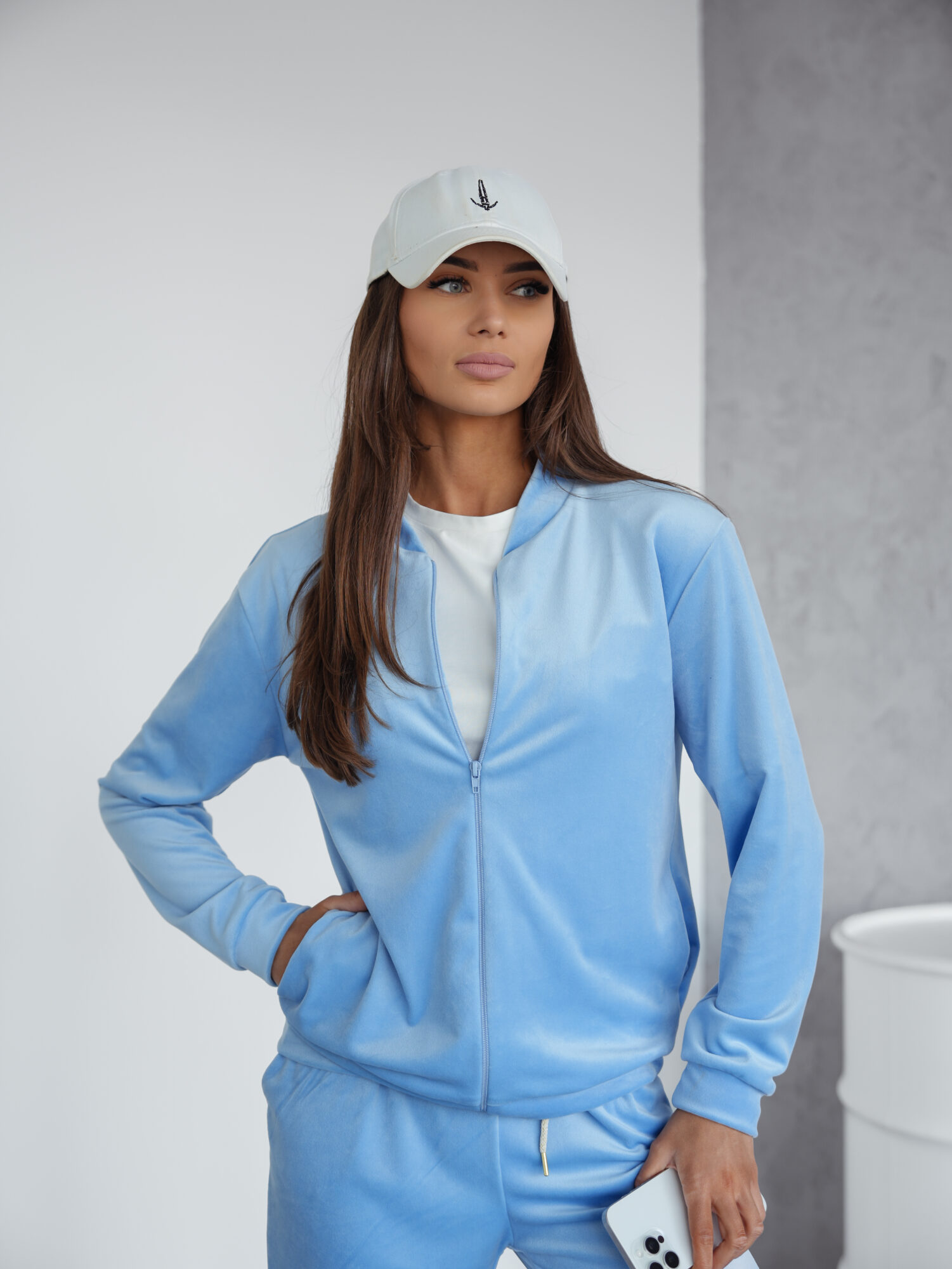 Welurowy komplet dresowy z bomberką pastelowy niebieski Luxe