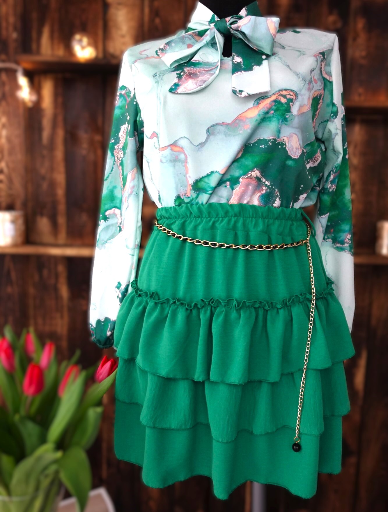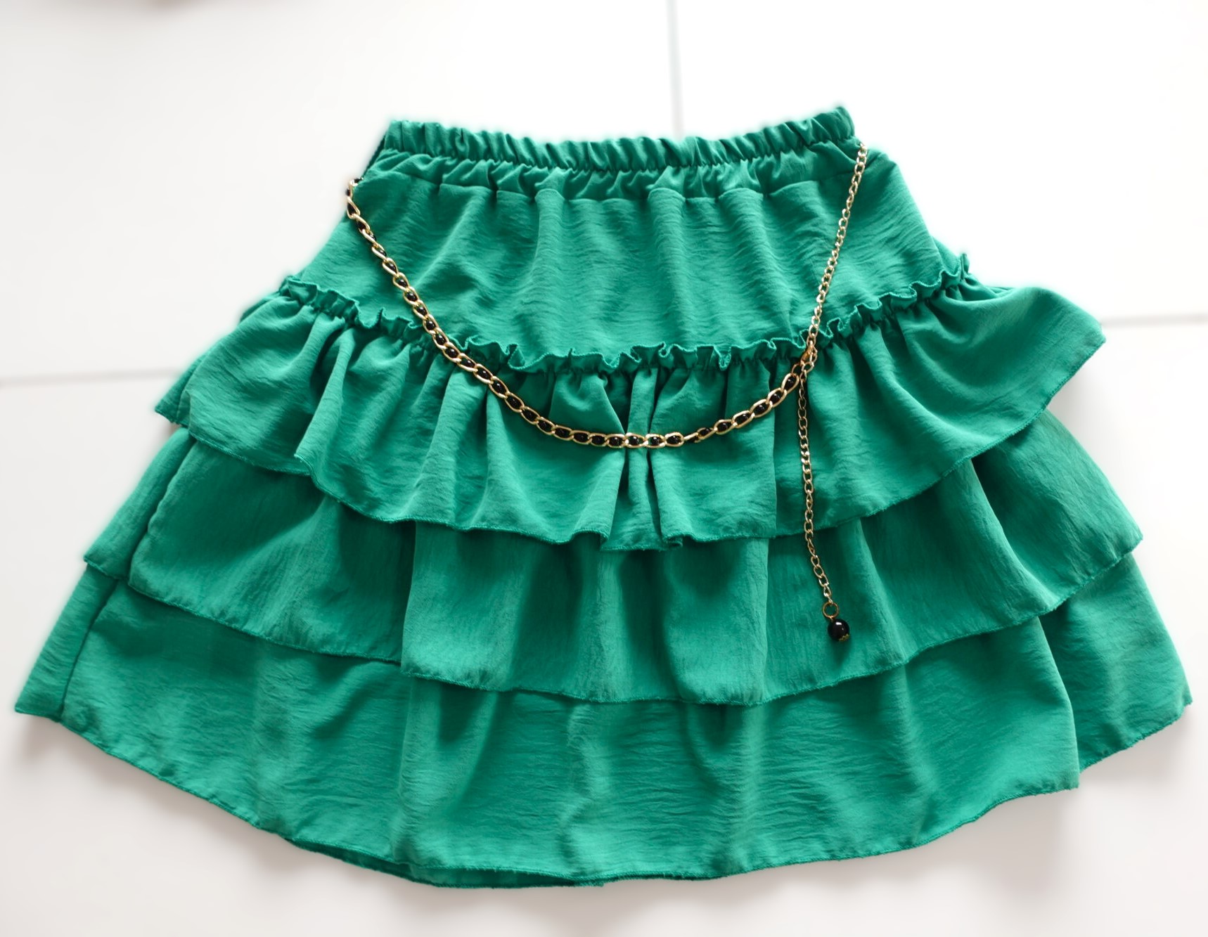 Spódnica mini z falbanką i łańcuszkiem Enfa zielona